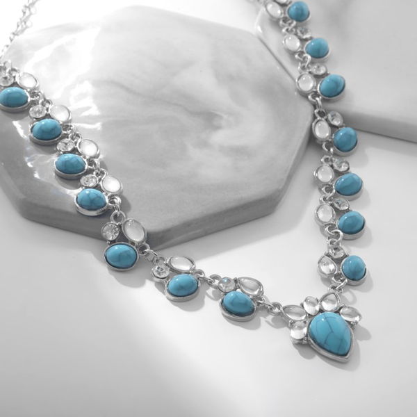 Колье под натуральный камень бирюза (имитация) с лунным камнем, цвет бело-голубой, цвет серебристый