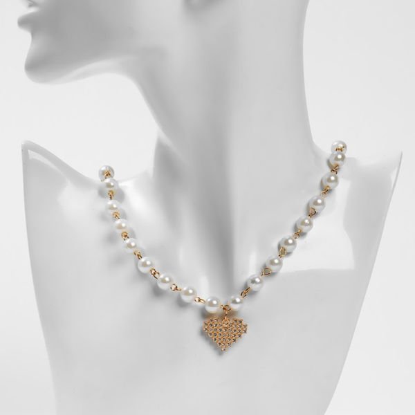 Колье-чокер «Стразик» сердце и жемчужные бусины, б..
