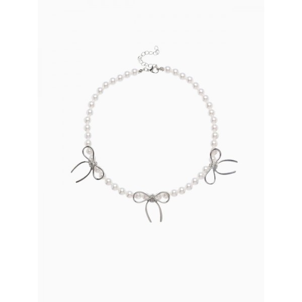 Колье «Бантик» с жемчугом, белое, цвет серебристый