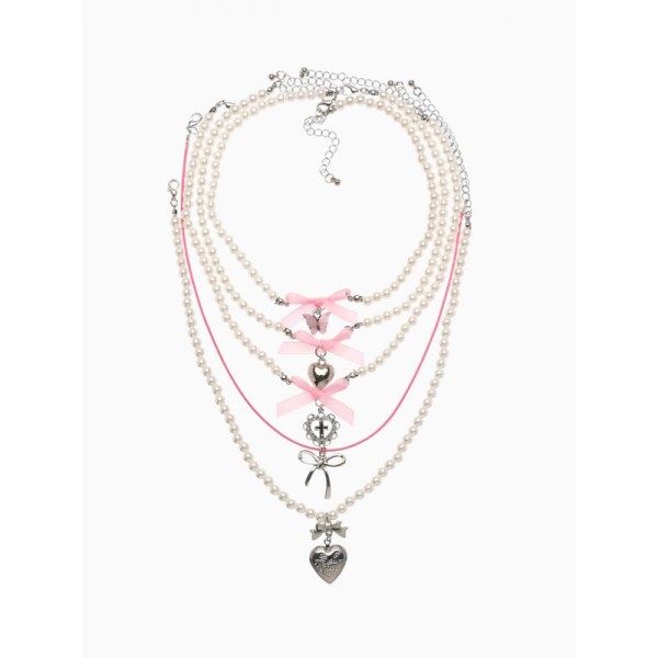 Колье «Бантик» набор 5 шт. бело-розовое, цвет серебристый