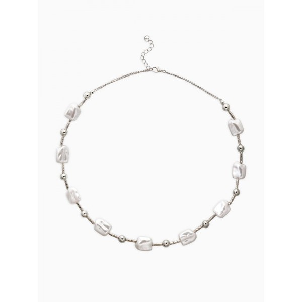 Бусы «Жемчуг. Майорика прямоугольник», L=55 см, белые, цвет серебристый