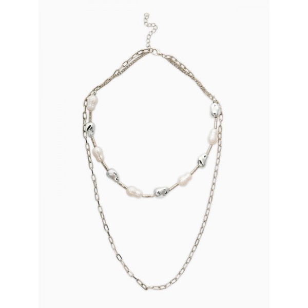 Колье цепочка «Жемчуг барокко», удлиненное, 2 яруса, белое, цвет серебристый