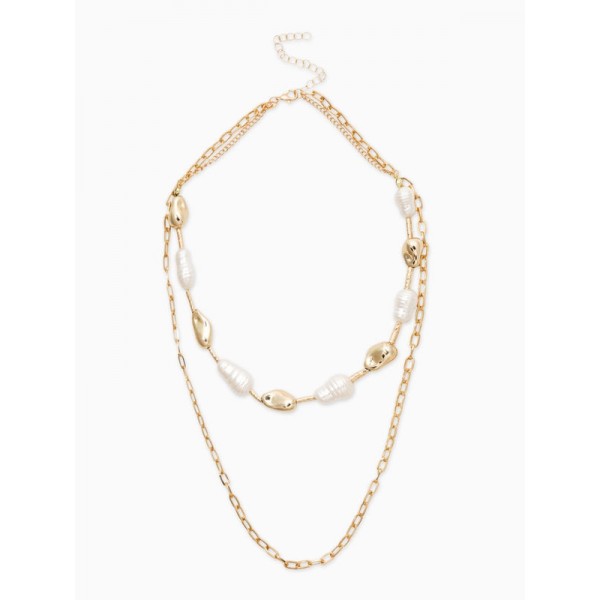 Колье цепочка «Жемчуг барокко», удлиненное, 2 яруса, белое, цвет золотистый