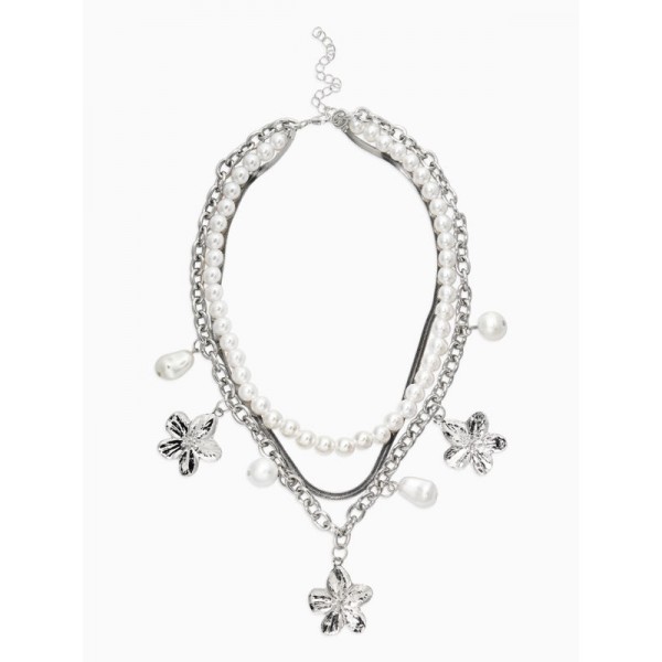 Колье многослойное с Кулонми «Жемчуг с цветами», 3 уровня, 34, 36, 40 см, медь, белое, цвет серебристый