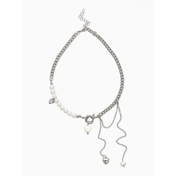 Колье с подвеской на цепочке «Сердце с жемчугом», керамика, L=35 + удлинитель 5 см, белое, цвет серебристый