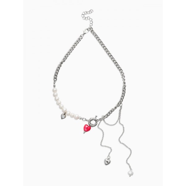 Колье с подвеской на цепочке «Сердце с жемчугом», керамика, L=35 + удлинитель 5 см, белый, красный, цвет серебристый