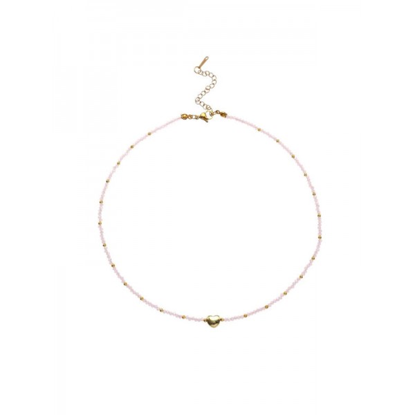 Колье-чокер бисерный «Сердце», бусина №4, розовый, цвет золотистый, 35 см