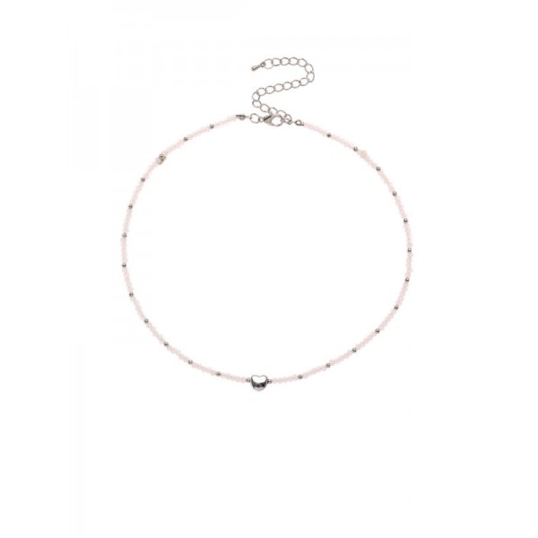 • Колье-чокер бисерный «Сердце» бусина №4, белый, цвет серебристый, 35 см