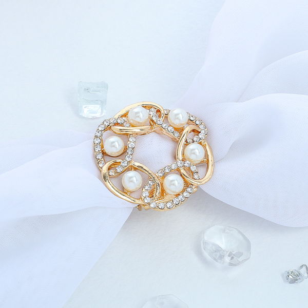 Зажим для платка "жемчужный круг", майорка, цвет белый+золотистый