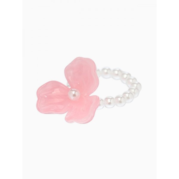 Кольцо бисерное «Цветок трилистник жемчужный», розовое, на резинке, безразмерное