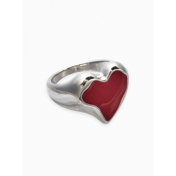 Кольцо «Корейский стиль. Сердце», размер 17, бордовое, цвет серебристый