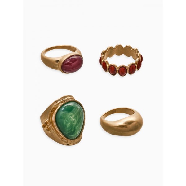 Набор колец «Новый стиль. Винтаж», 4 шт. размер МИКС, зелено-коричневый, цвет золотистый