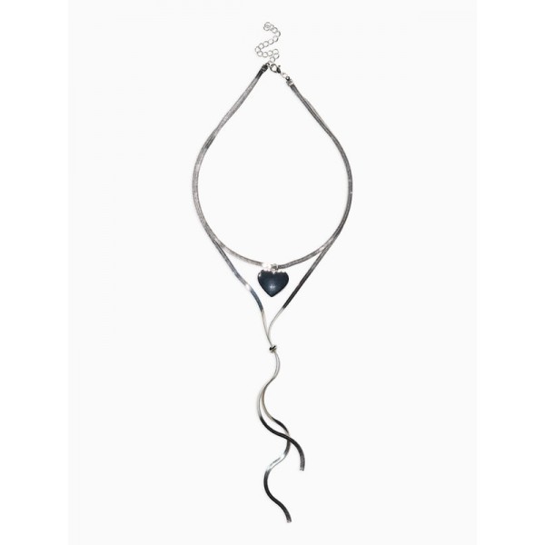 Кулон на затяжке многослойный «Медальон сердце», 2 яруса L=40, 70 см, медь, цвет серебро