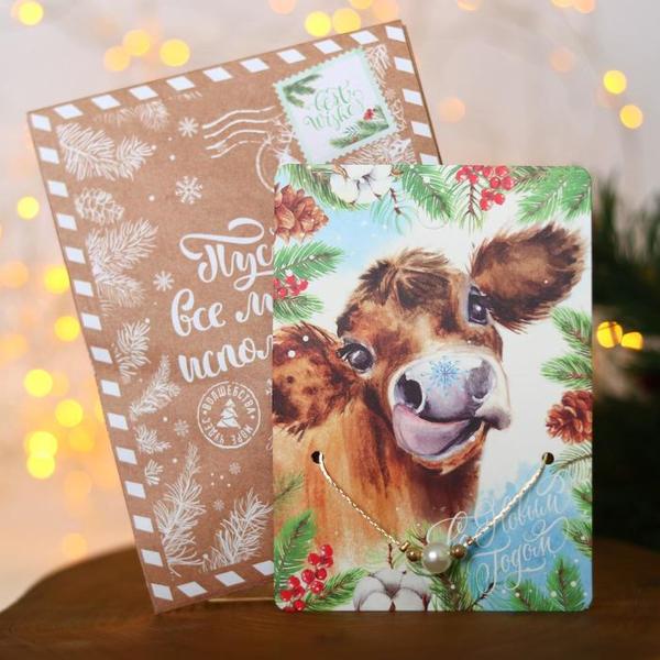 Кулон новогодний "Предсказание" жемчужина, цвет белый, цвет золотистый, 45 см