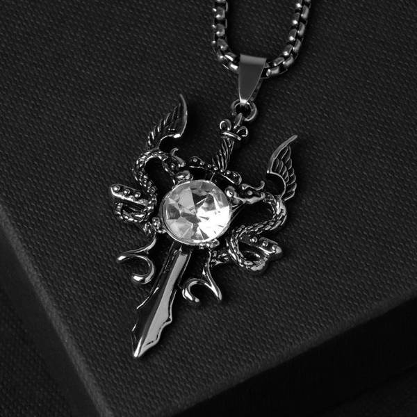 Кулон "Меч" пламя, цвет белый, цвет серебристый, 60 см