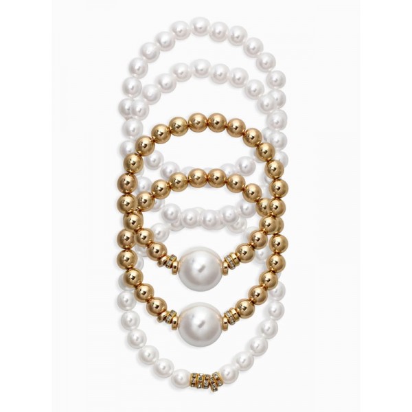 Браслеты из бусин «Стильный жемчуг», набор 5 шт. бусины №8 и 16, белый, цвет золотистый