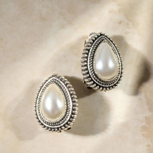 Клипсы "Грейс" капля в огранке, цвет белый, цвет серебристый