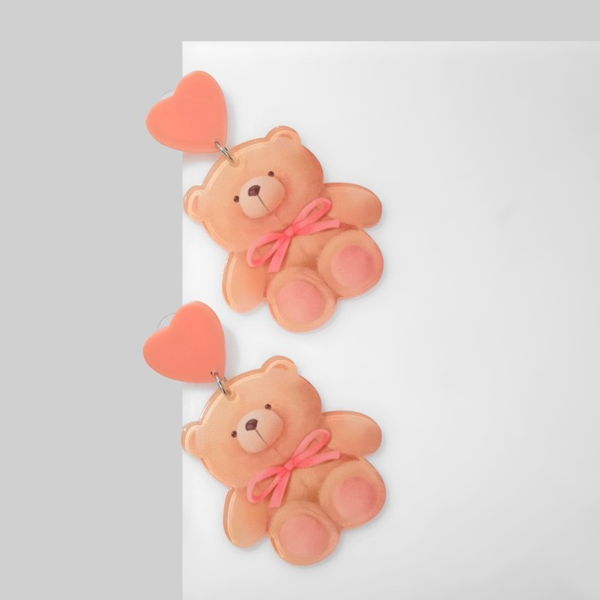 Серьги "Сердца" мишки, цвет розово-бежевый, цвет золотистый