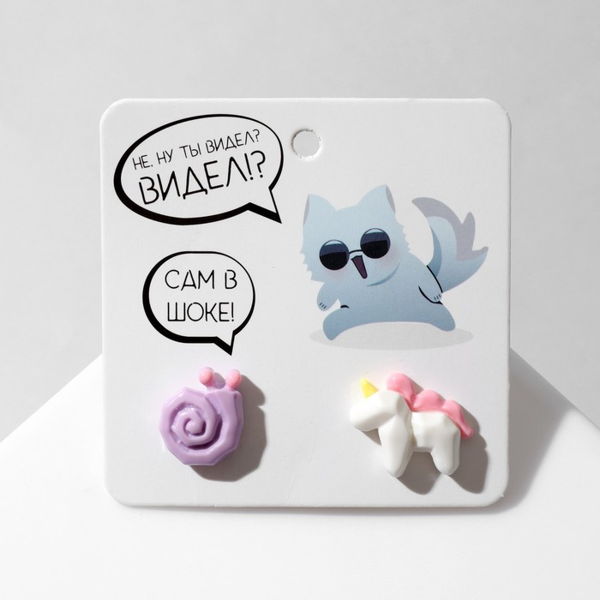 Серьги пластик "Абстракция" единорог и улитка, цветные