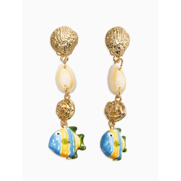 • Серьги «Морской мир» рыбы с перламутрми, бело-зелёные, цвет золотистый