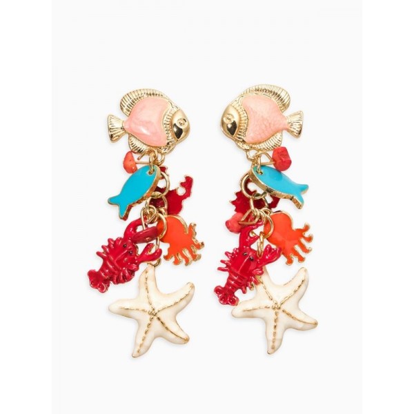 Серьги «Морской мир» рыбки, цветные, цвет золотистый