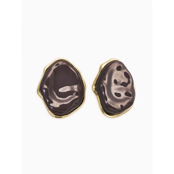 Серьги большие «Мятый овал», акрил, серые, цвет золотистый