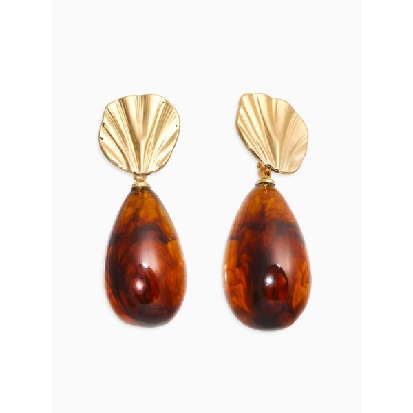 Серьги акрил «Веер с каплей», коричневые, цвет золотистый