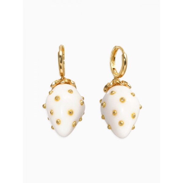 Серьги конго «Клубника в крапинку», белые, цвет золотистый
