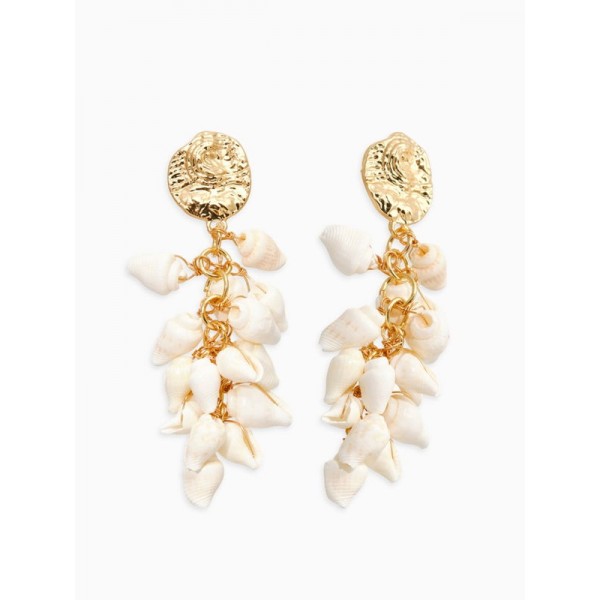 Серьги «Морской мир» ракушечки маленькие, белые, цвет золотистый