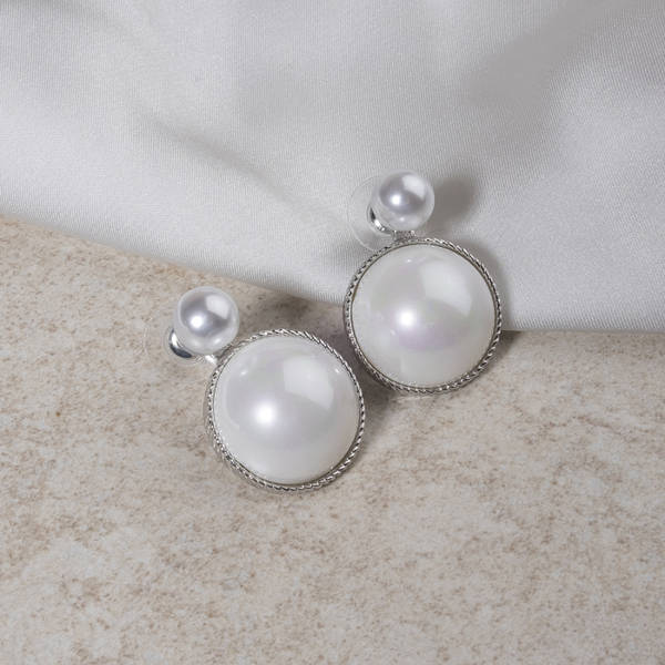 Серьги с жемчугом "Великолепие" два круга, цвет белый, цвет серебристый