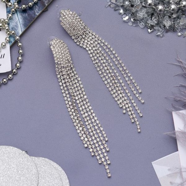 Серьги висячие со стразами "Голливуд" водопад нитей, цвет белый, цвет серебристый (стразы)