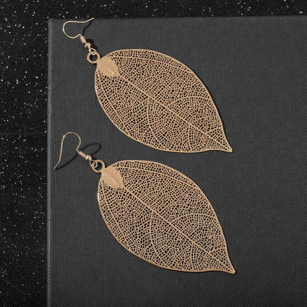 Серьги металл "Лист липы", цвет золото