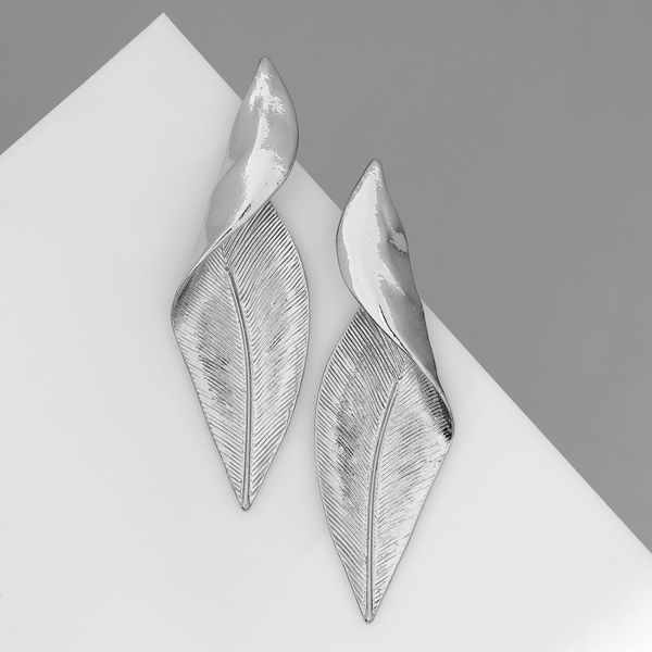 • Серьги металл «Богема» скрученный листок, цвет серебро