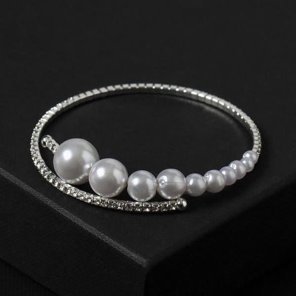 Браслет-пружинка жемчуг на убывание, d=6,5 цвет белый, цвет серебристый