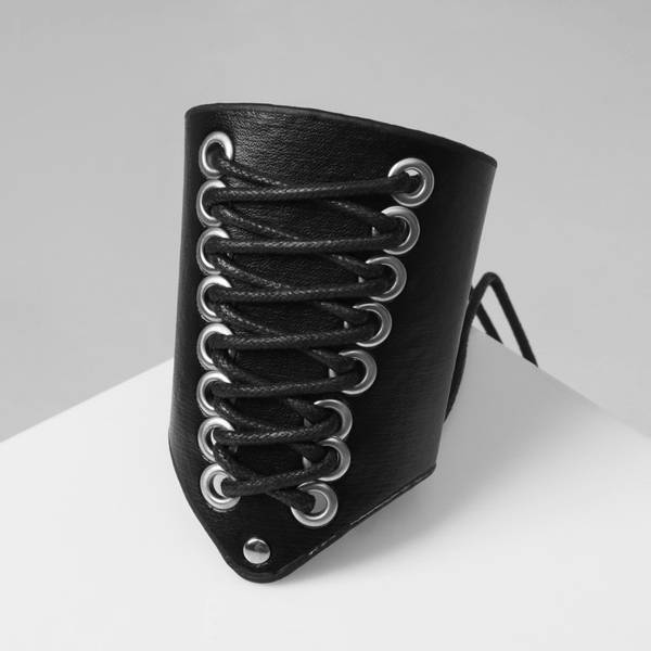 Браслет кожа «Манжета» на шнуровке, цвет чёрно-серебряный