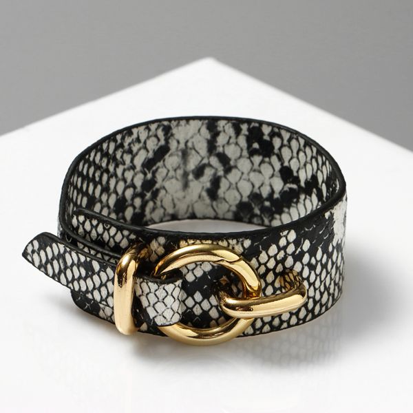 Браслет кожа «Сафари» змея, цвет бело-чёрный L=17,5см
