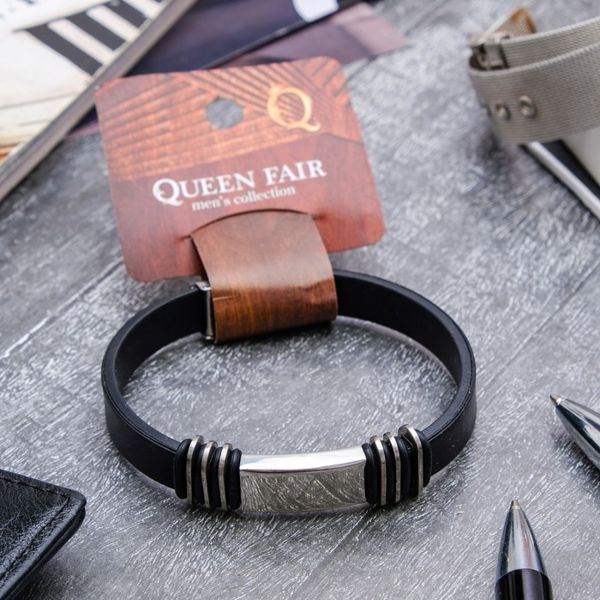 Браслет "Стиль" прямоугольник с тройными вставками, цвет чёрный, цвет серебристый (каучук, сталь)