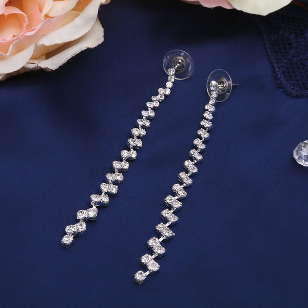 Серьги висячие со стразами Princess дорожка утончённая, цвет белый, цвет серебристый