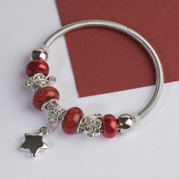 Браслет ассорти "Марджери" звезда, цвет красный, цвет серебристый