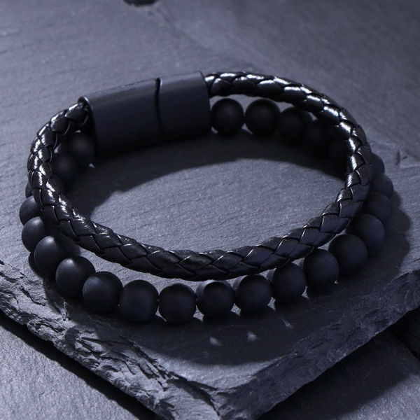 • Браслет "Мощь" шарики, цвет чёрный в чёрном металле