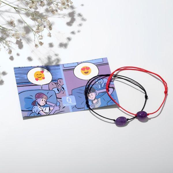 Браслеты "Неразлучники" аметист на красной и чёрной нитях