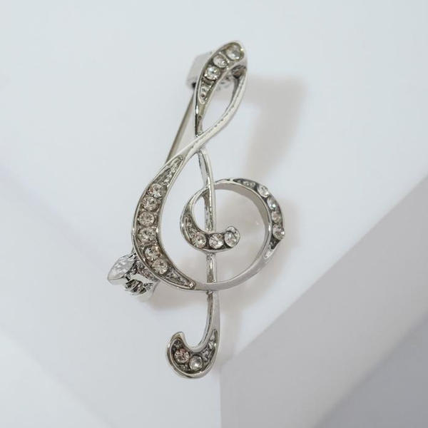 Брошь "Скрипичный ключ" сияние, цвет белый, цвет серебристый