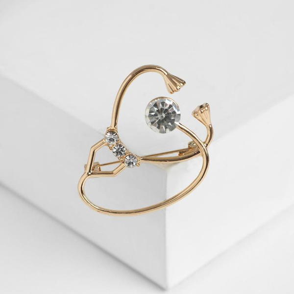 Брошь "Стетоскоп" крупный, цвет белый, цвет золотистый