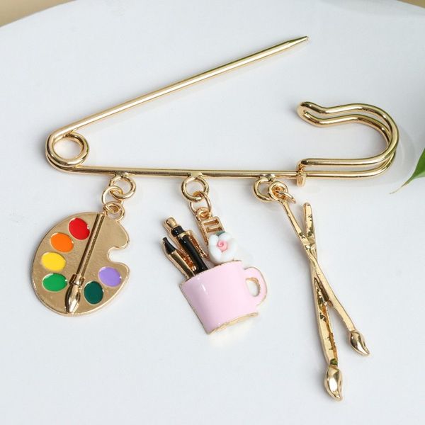 Булавка "Художник" с Кулонми, 7см, цветная, цвет золотистый