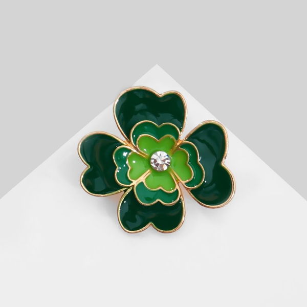 Брошь "Клевер" роскошный, цвет тёмно-зелёный, цвет..