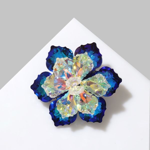 Брошь "Цветок" сказочный, цвет радужно-синий, цвет серебристый