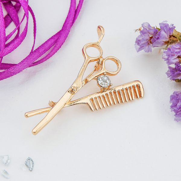 • Брошь "Парикмахер", цвет белый, цвет золотистый (стразы)