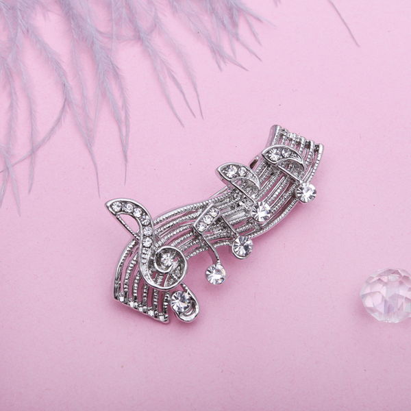 Брошь "Ноты" мелодия, цвет белый, цвет серебристый (стразы)
