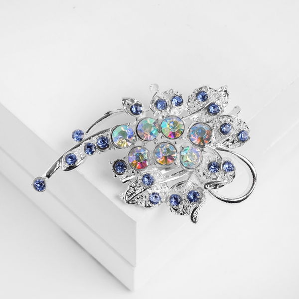 Брошь "Роса" на ветке, цвет голубой, цвет серебристый (стразы)