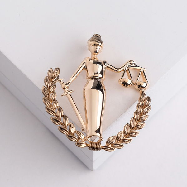 Брошь "Фемида" богиня правосудия, цвет золото